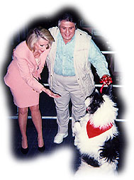 Well, Mike the Dog was there to sell Bash Dibra's new training video, SIMPLE SOLUTIONS (which, by the way, sold out!); and the other three dogs were the elite entourage to (puff, puff!) comedienne, talk show queen and QVC diva, Joan ("Can We Talk?") Rivers! Who, by the way, ALSO sold out her line of jewelry!